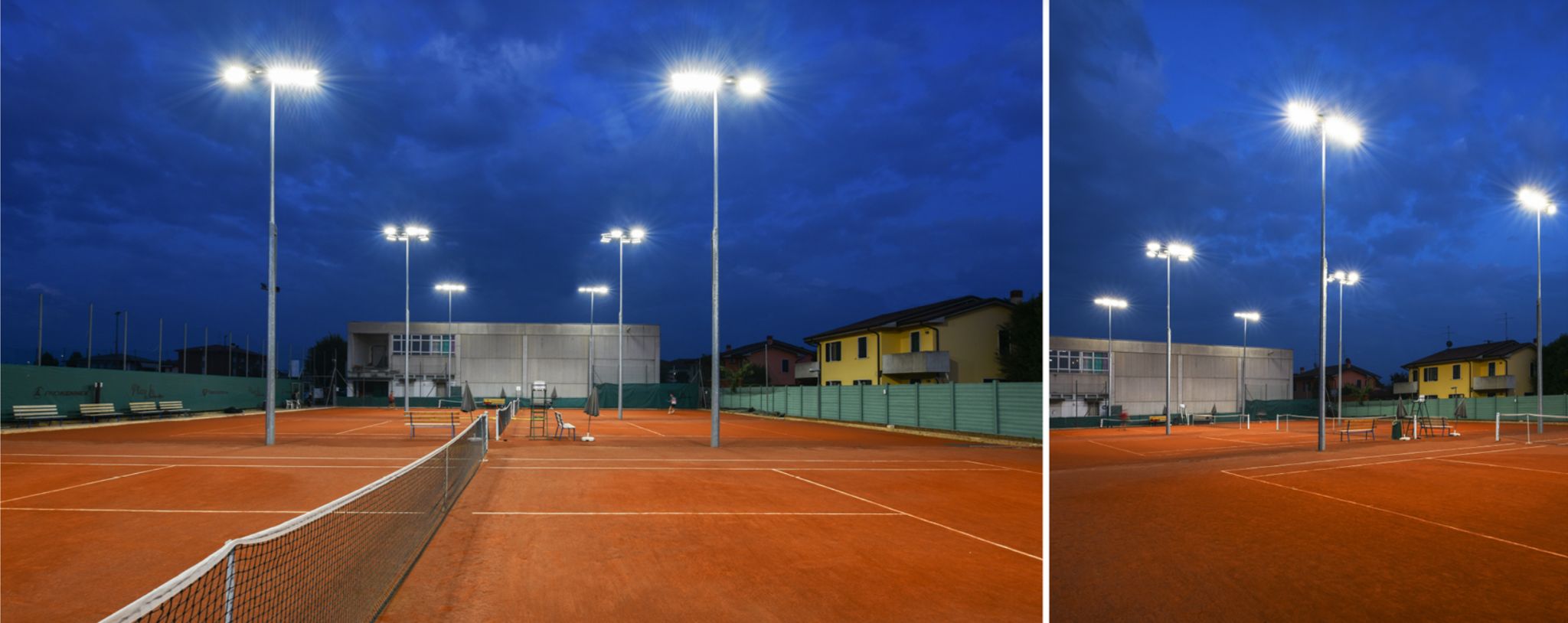 Un punto di forza della struttura è l’illuminazione LED di ultima generazione, che permette di giocare anche nelle ore serali con una visibilità chiara e uniforme.